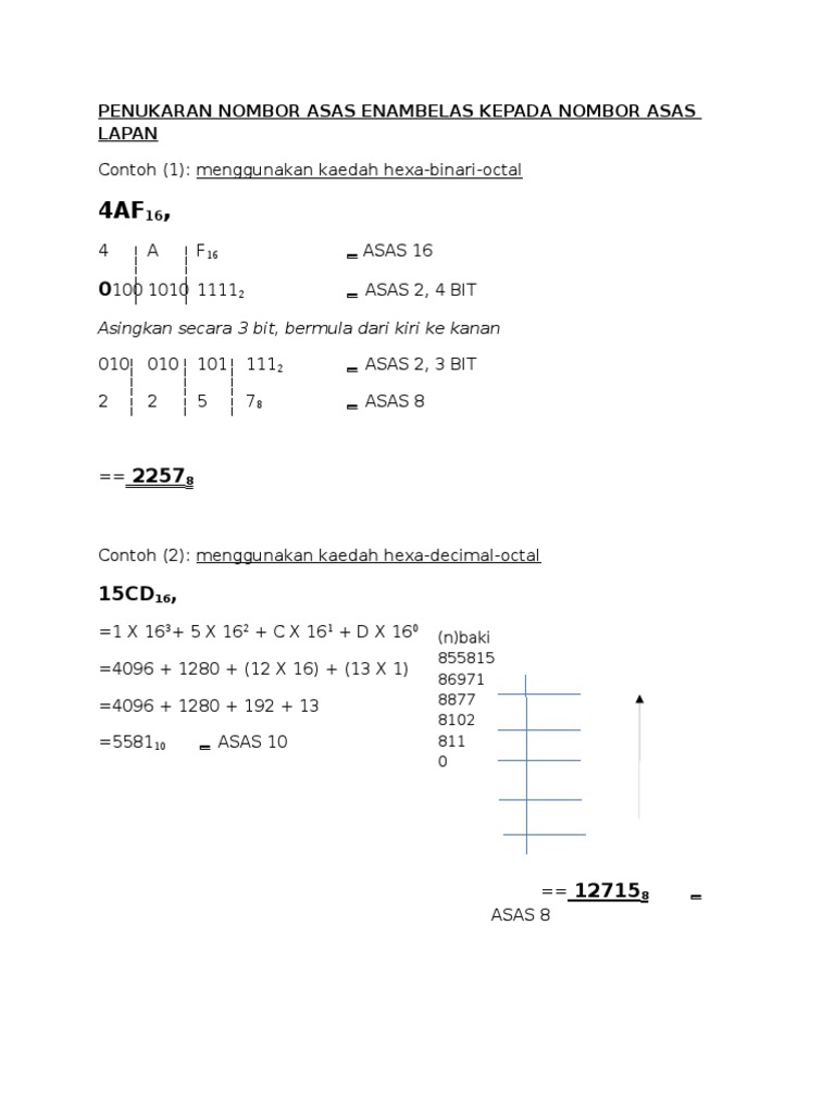 Penukaran Nombor Asas Enambelas Kepada Nombor Asas Lapan Pdf