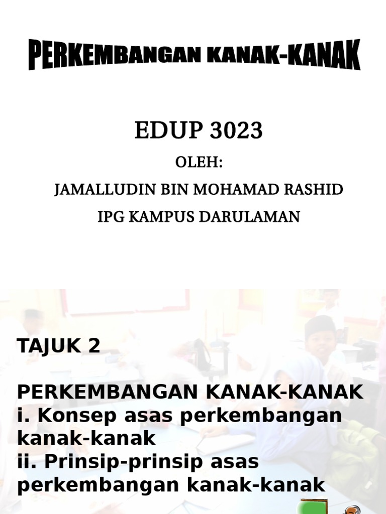 Istilah kognitif merujuk kepada aktiviti mental seperti berfikir menaaakul menganalisis membentuk konsep menyelesaikan masalah dan sebagainya. EDU3102 Perkembangan Kanak-kanak 32 EDU3103 Murid dan Alam Belajar 1 EDU3104 Pengurusan Bilik Darjah dan Tingkah Laku 31 EDU3105 Teknologi Dalam Pengajaran dan Pembelajaran 16 EDU3106 Budaya Dan Pembelajaran 1 EDU3107 Bimbingan dan Kaunseling Kanak-Kanak 24 EDU3108 Asas Kepemimpinan dan Perkembangan Profesional Guru 1. Konsep dan prinsip perkembangan kanak-kanak.