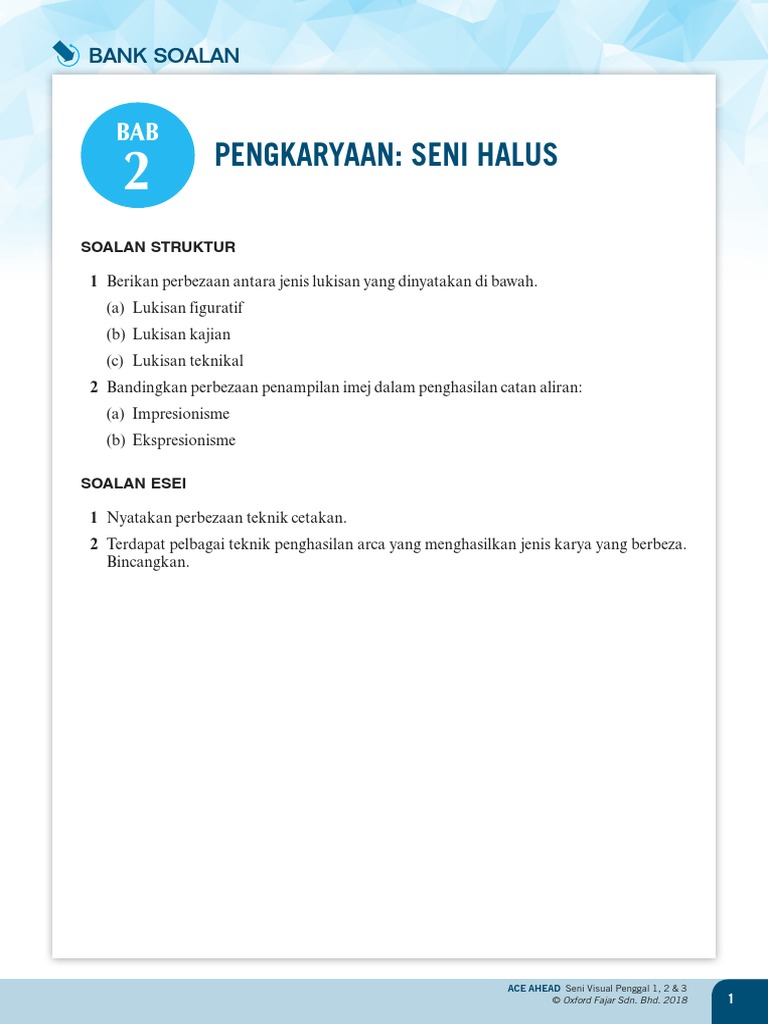 Bahasa Melayu BM Bahasa Inggeris Matematik Sains Pendidikan Islam Sejarah Geografi Bahasa Arab Bahasa Cina Bahasa Tamil Asas Sains Komputer ASK Reka Bentuk dan Teknologi RBT. Bank soalan seni visual tingkatan 1 kssm 2017. Kegagalan pelajar menguasai asas seni reka menyebabkan mereka tidak berkeupayaan untuk mentafsirkan peristiwa-peristiwa yang berlaku di sekelilingnya nilai-nilai murni yang rendah kurang peka.