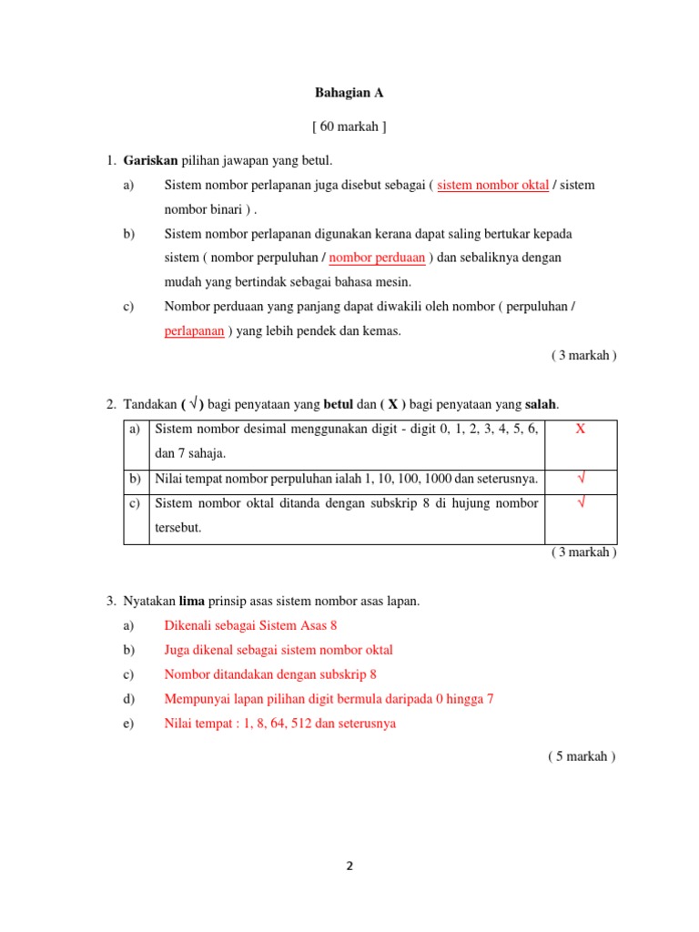 Tandakan bagi sistem nombor perduaan yang betul dan x bagi yang salah. Sistem nombor yang digunakan hari ini mempunyai empat ciri penting iaitu. 111 Menamakan nombor hingga 10 000.