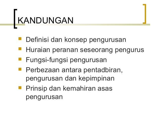PENGURUSAN ORGANISASI Pengertian Pengurusan Pengurusan merupakan usaha yang dilakukan oleh pengurus untuk mencapai matlamat organisasi. Setiap tempat kerja hendaklah mengambil langkah-langkah untuk menambah baik cara menguruskan KKP dan ini dapat dicapai melalui pelaksanaan Sistem Pengurusan Keselamatan dan Kesihatan Pekerjaan SPKKP. Kemahiran Saintifik NOTA Kemahiran Proses Sains.