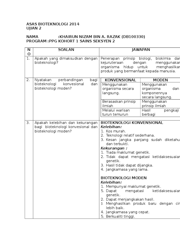Skema Jawapan Asas Bioteknologi Ujian 2 Db100330 Pdf