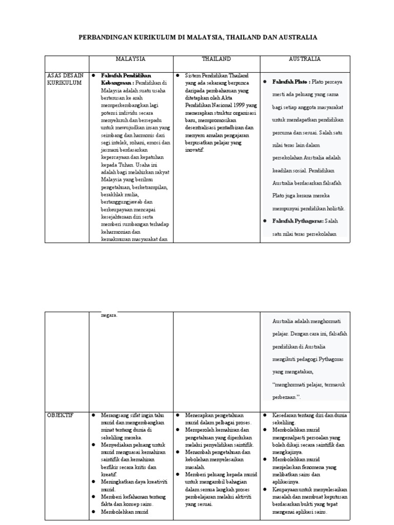 Perbandingan Kurikulum Di Malaysia Thailand Dan Australia Pdf