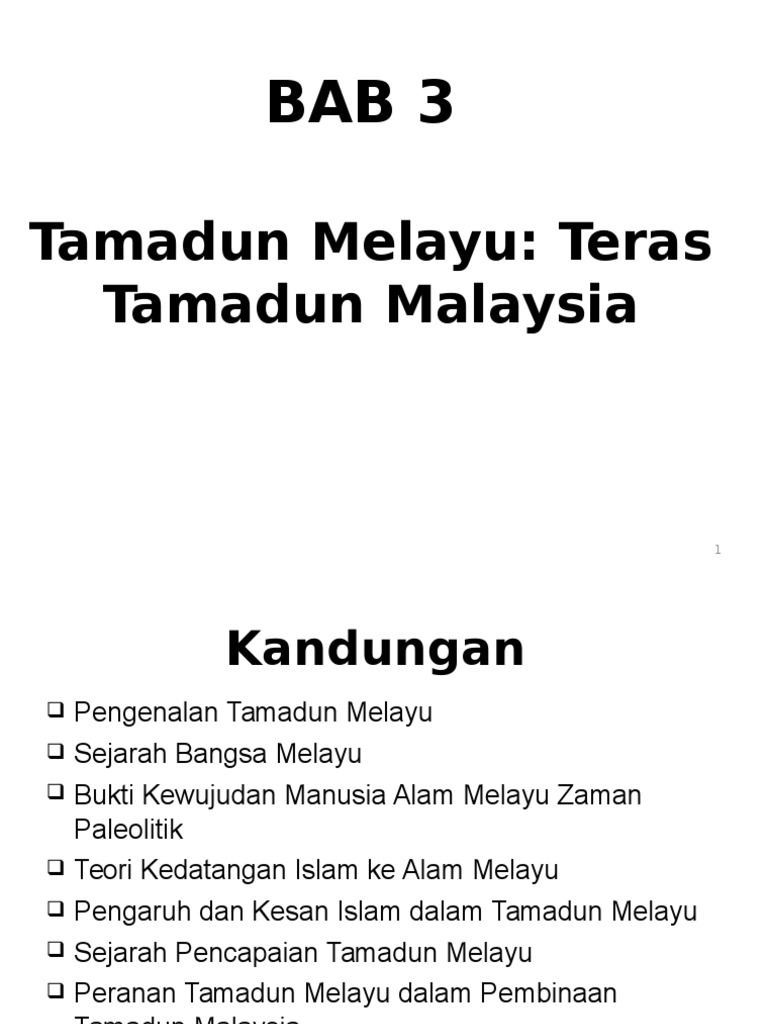 Perubahan corak pemikiran dan kepercayaan masyarakat Melayu yang bersandarkan kepada ajaran Islam dan terdapat banyak faktor yang mendorong kepada pembinaan tamadun Malaysia berdasarkan. Dalam Pembinaan Tamadun Malaysia PENGENALAN. Penerimaan secara damai dan sejahtera.