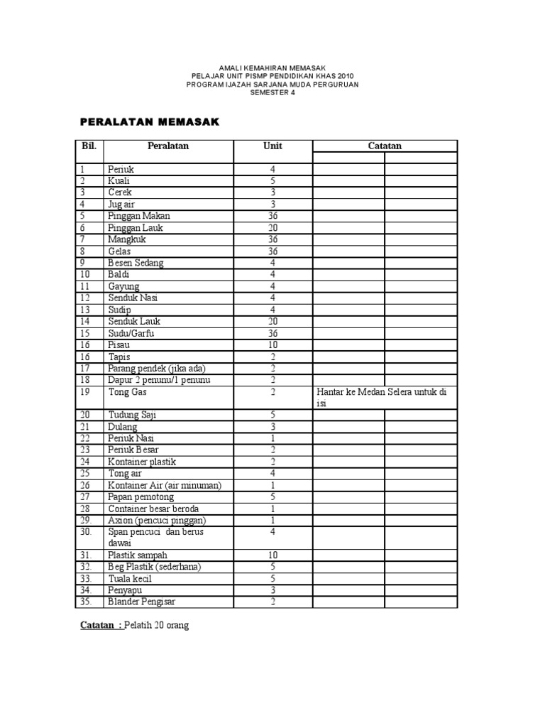 List barang dapur yang wajib ada adalah. Namun ia bergantung kepada bilangan isi rumah dan berapa hidangan dimasak. Kemudian senarai barang akan diperiksa semula dengan teliti supaya tiada yang tertinggal.
