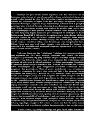 Konsep estetika dalam fokus penyelidikan ini dirangka untuk memperluaskan bidang pendidikan seni visual ke aras pengetahuan yang optimum. Matlamat Seni Dalam Pendidikan sekolah rendah adalah untuk membentuk keperibadian. 20 Kepe ntingan Grafik Dalam Pendidikan Grafik penting untuk menyediakan bahan-bahan pandangan visual yang sangat penting untuk menyampaikan sesuatu mesej tertentu dengan jelas.