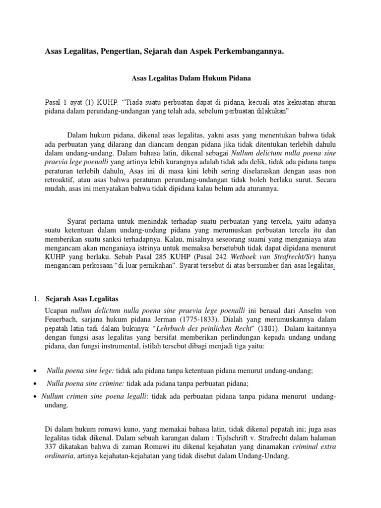 Asas legalitas adalah asas yang menentukan bahwa setiap peristiwa kriminal kejahatan kriminal harus diatur terlebih dahulu oleh aturan hukum atau.