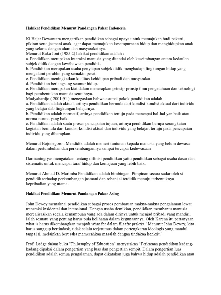 Hakikat Pendidikan Menurut Pandangan Pakar Indonesia Pdf