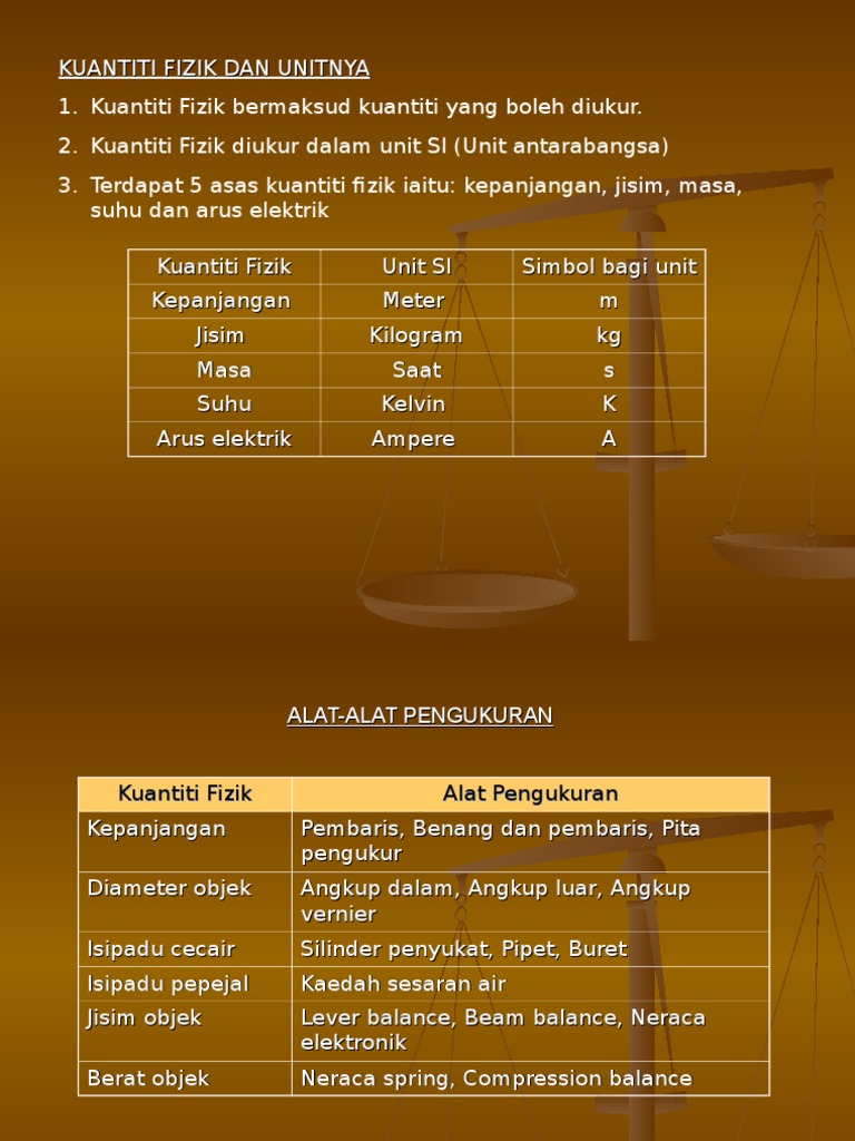 PecutanPecutan ialah kadar perubahan halaju. Assalamualaikum dan salam sejahtera Salam 1 Malaysia 1. Khairi KUANTITI ASAS DAN KUANTITI TERBITAN KUANTITI ASAS Kuantiti fizikal yang tidak boleh ditakrifkan dalam kuantiti fizik yang lain Kuantiti Unit SI Simbol unit panjang jisim masa suhu Arus elektrik meter kilogram saat kelvin ampere m kg s K A 2.