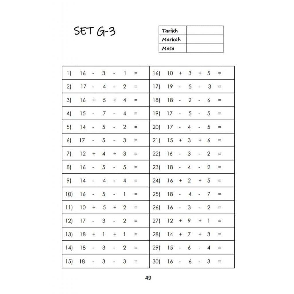 Lembaran Kerja Matematik Tahun 1 Operasi Asas Tambah Tolak